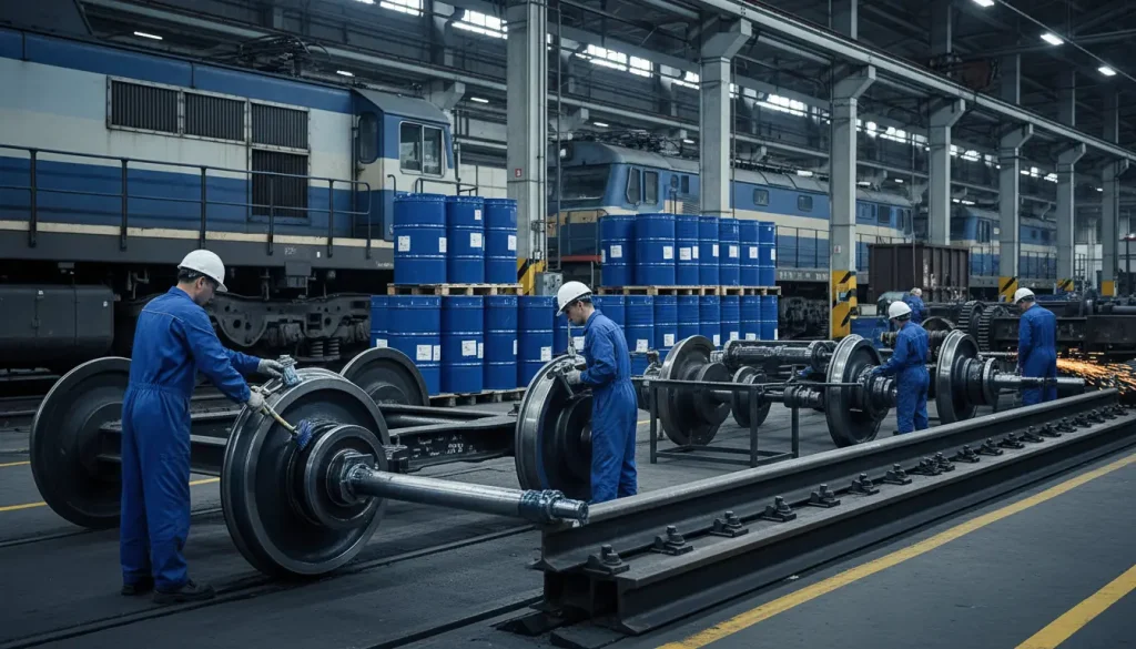Os lubrificantes ferroviários suportam cargas pesadas e velocidades variáveis, com aditivos para proteção contra poeira e umidade em trilhos e locomotivas. Eles minimizam o consumo de energia e prolongam a manutenção em sistemas de tração. Segmentos relacionados incluem ferrovia (para motores de locomotivas e redutores) e manutenção de trilhos (para graxas de rolamentos).